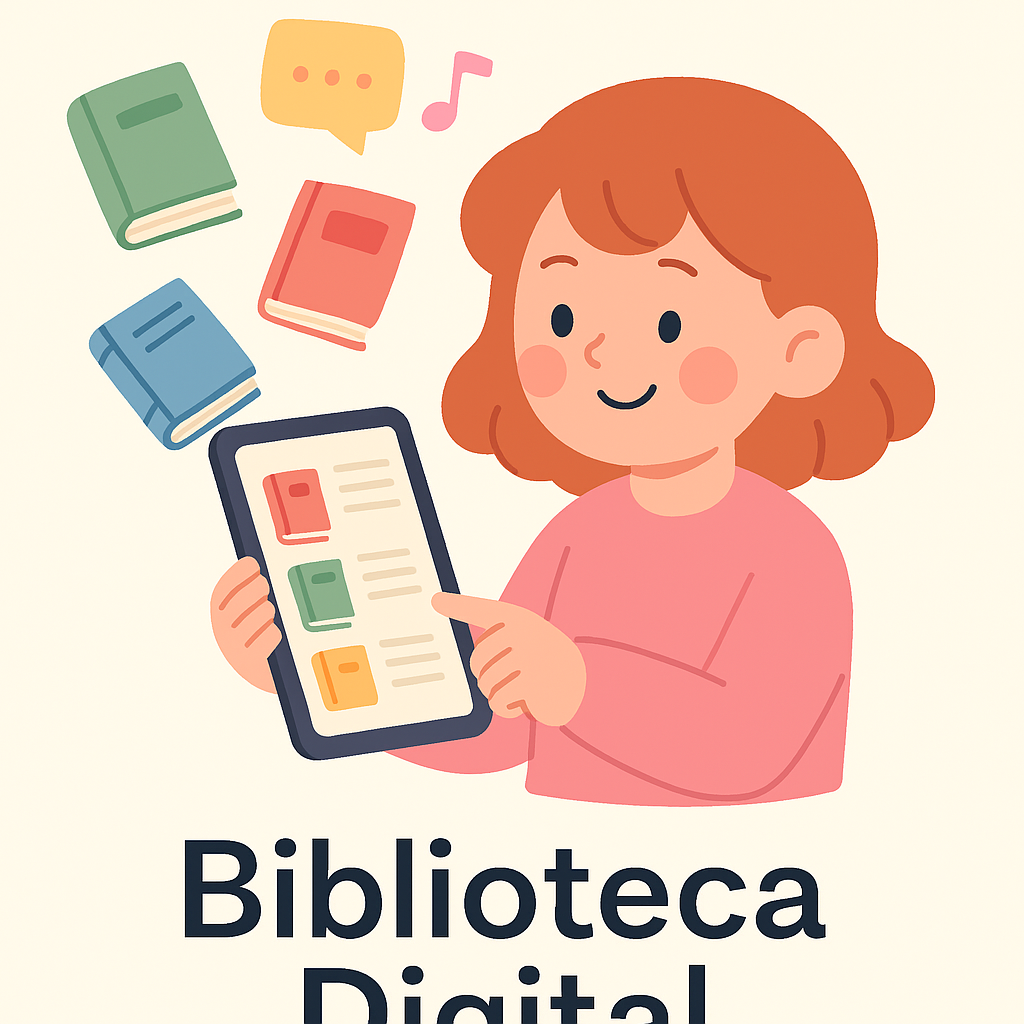 Plataforma virtual con acceso a cuentos, libros académicos y materiales multimedia.